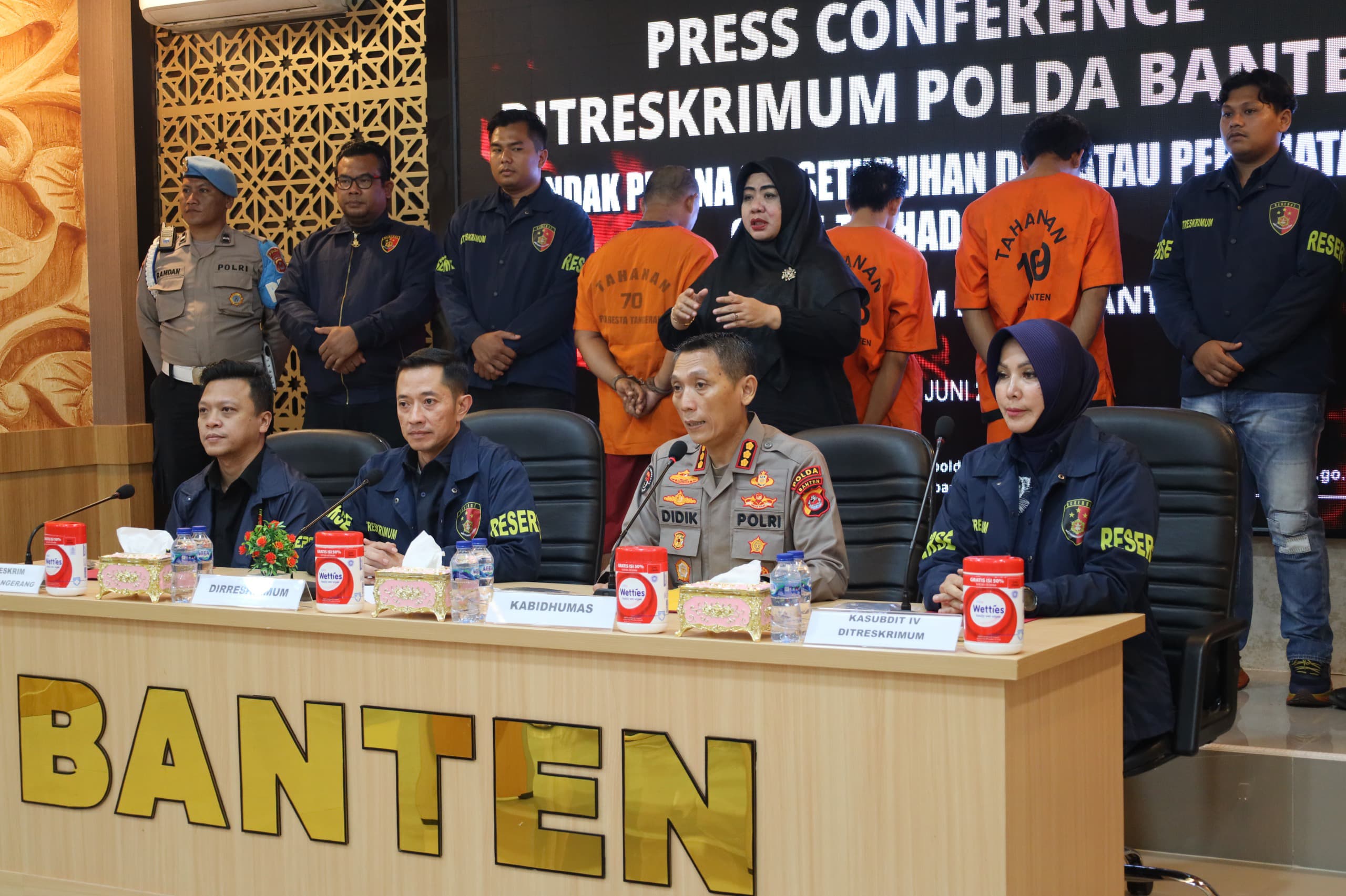 Kegiatan dipimpin Kabid Humas Polda Banten Kombes Pol Didik Hariyanto, Dirreskrimum Polda Banten Kombes Pol Dian Setyawan, Kasubdit 4 Renakta Kompol Herlia Hartarani dan Kasatreskrim Polresta Tangerang Kompol Arief Nazaruddin.
