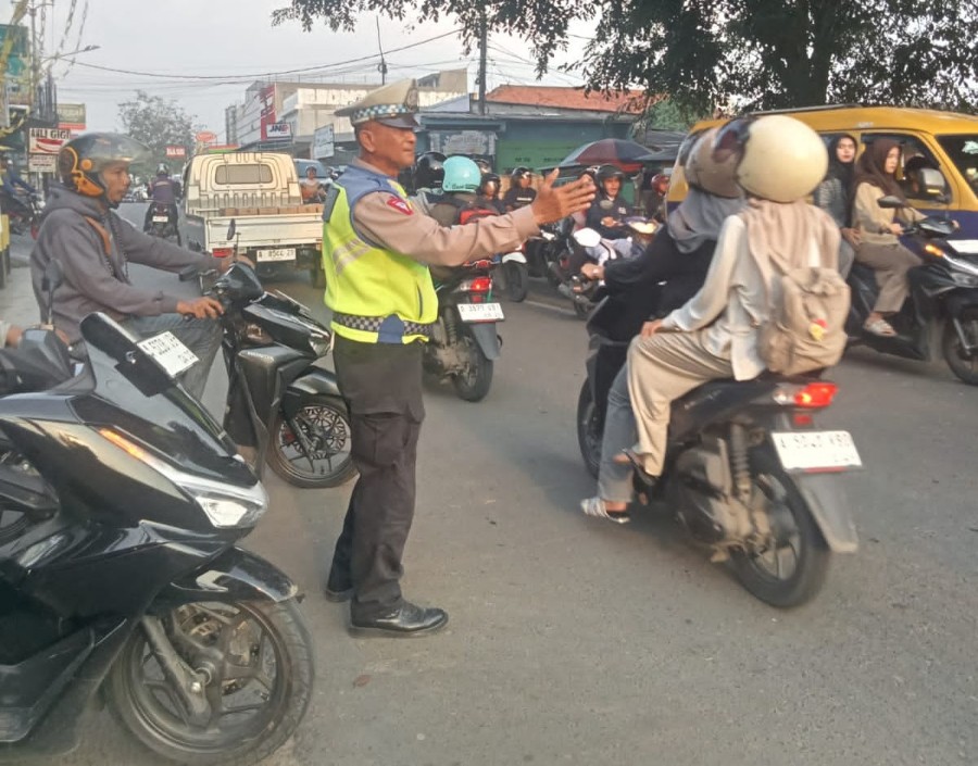 Dalam pelaksanaan tugasnya, anggota Unit Lalu Lintas Aiptu Slamet R. dari Polsek Balaraja turun langsung ke lapangan untuk melakukan pengaturan dan rekayasa arus lalu lintas guna mengurai kepadatan serta mencegah terjadinya kemacetan parah.