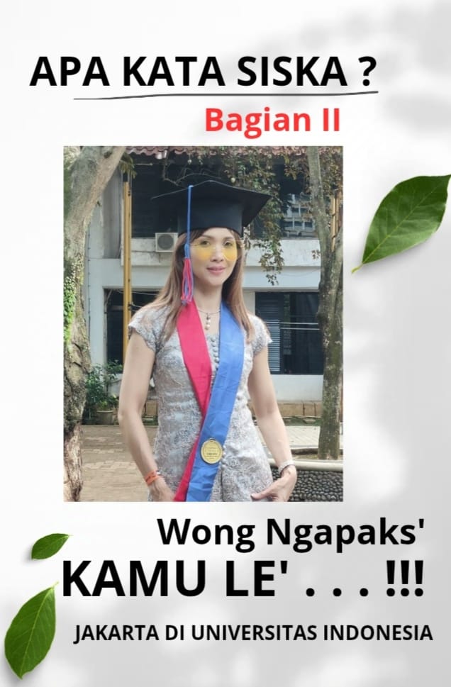 Dengan demikian semua Wisuda Dari Program Sarjana Universitas Indonesia, selamat dan sukses menempuh perkembangan berikutnya dalam pengemban ilmu sejatinya di mata publik kelak pada masyarakat terangkum “bermutu diamalkan selalu dalam prestasi yang praktek kerja diwaktu masa kuliah KKN dapat mengenalkan ke seluruh bidang tergeluti memancarkan pesona anak bangsa Indonesia dapat tumbuh smart – excellent – sweety”, ketapatan langkah Apa Kata Siska? di Bagian II ini pun – terus memprestasikan semua anak muda/i tak salah langkah dalam meraih masa depan esok.