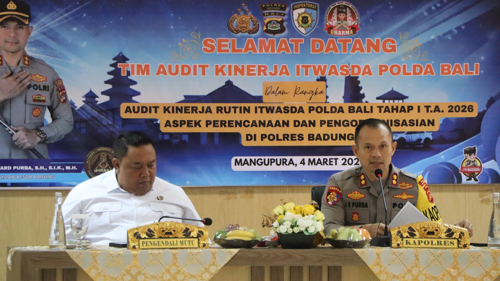Kapolres Badung AKBP Joseph Edward Purba dalam sambutannya menyampaikan bahwa audit merupakan bagian penting dari upaya membangun institusi kepolisian yang profesional dan terpercaya. Ia menegaskan komitmen Polres Badung untuk terbuka terhadap proses evaluasi demi peningkatan kualitas kinerja dan pelayanan kepada masyarakat.