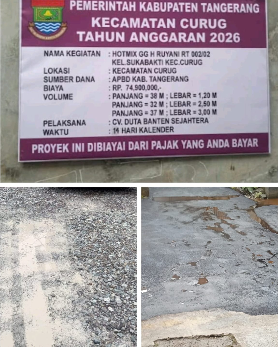 Kualitas jalan Hotmik harus diutamakan, bukan hanya sekedar menyelesaikan proyek. Masyarakat Curug berhak mendapatkan jalan yang aman dan nyaman.