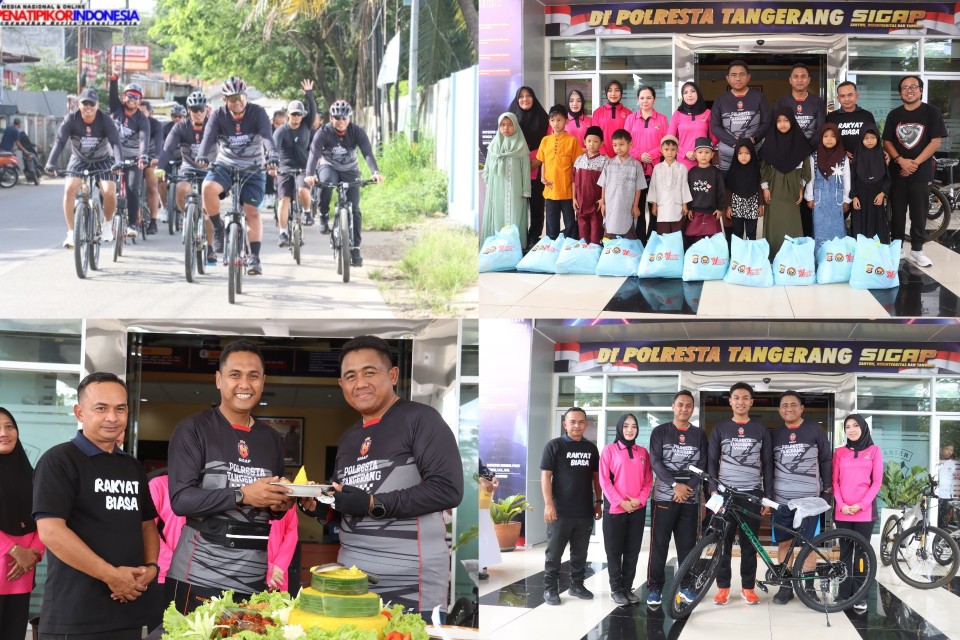 Tangerang | Penatipikor.com – Polresta Tangerang menggelar kegiatan gowes, senam, dan bakti sosial (baksos) santunan anak yatim bareng wartawan, Jumat (24/10/2025). Kegiatan dilaksanakan sebagai bagian dari rangkaian Hari Jadi ke-74 Humas Polri yang mengusung tema ‘Polisi Humanis Harapan Masyarakat’.