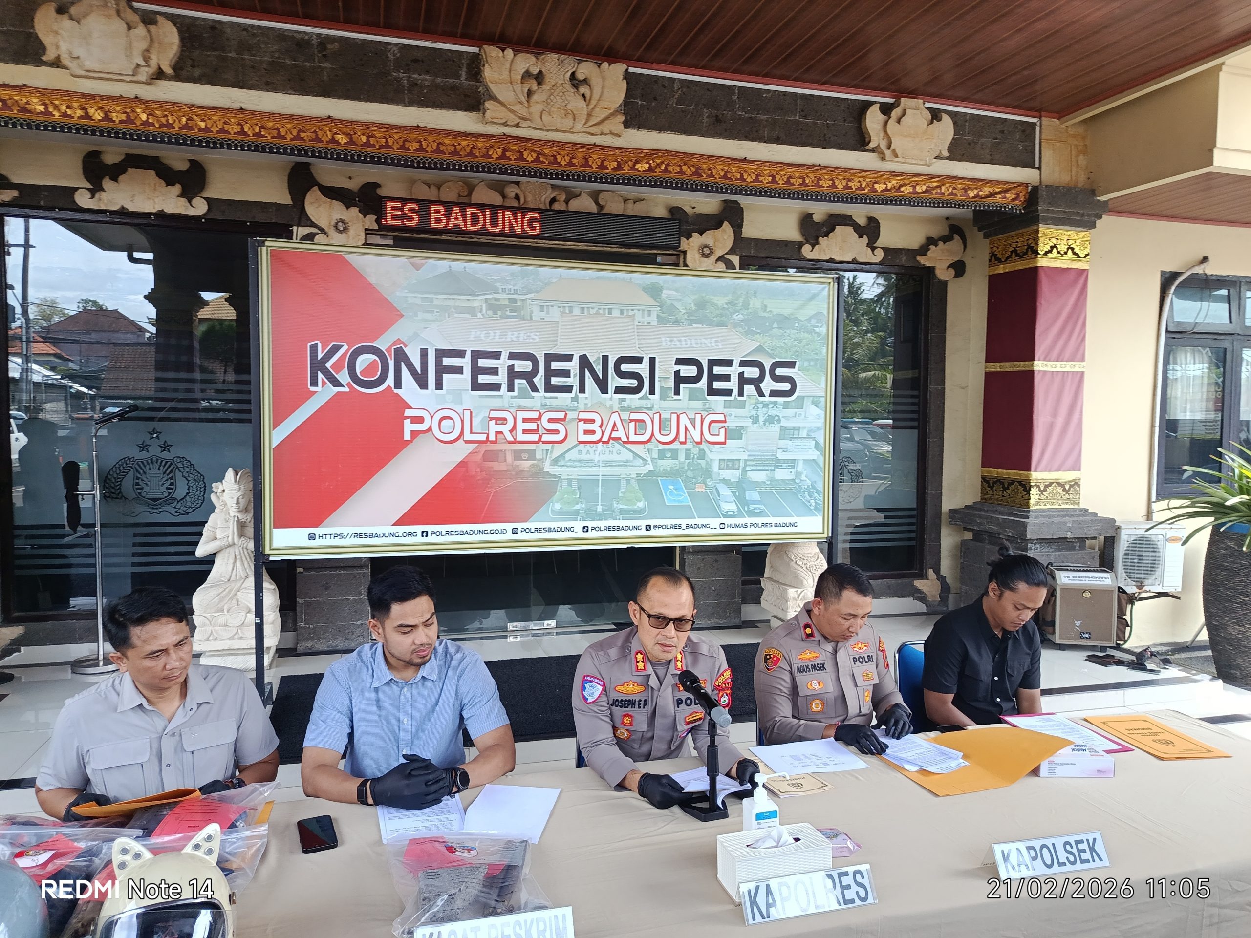 Penatipikor.com | MANGUPURA – Sebagai bentuk komitmen kepolisian dalam memperkuat sinergi dengan masyarakat, Kapolres Badung AKBP Joseph Edward Purba, SH, SIK, MH., mengajak seluruh lapisan masyarakat untuk bersama-sama menjaga situasi keamanan dan ketertiban masyarakat (kamtibmas) agar tetap aman, tertib, dan kondusif di wilayah hukum Polres Badung. Imbauan tersebut disampaikan saat doorstop yang dilaksanakan di Loby Mapolres Badung pada Sabtu (21/2/2026).