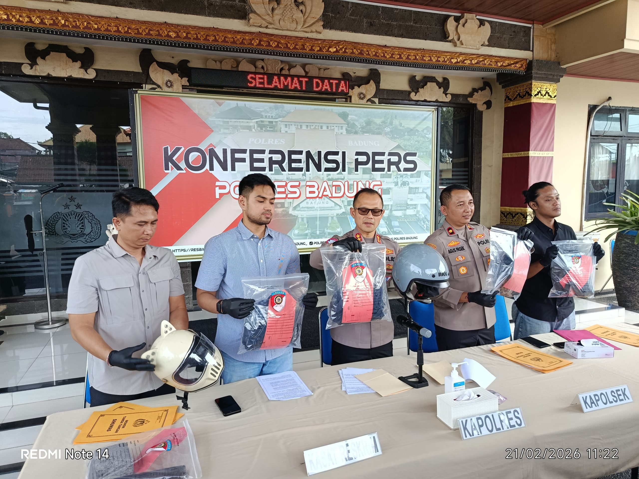 Penatipikor.com | BADUNG — Joseph Edward, Kapolres Badung, didampingi Kasat Reskrim dan Kapolsek Kuta Utara, memimpin konferensi pers di Lobi Mapolres Badung pada Sabtu (2/3/2026). Dalam keterangannya, Kapolres menyampaikan keberhasilan jajaran Satreskrim dalam mengungkap dua kasus tindak pidana yang menjadi perhatian masyarakat.