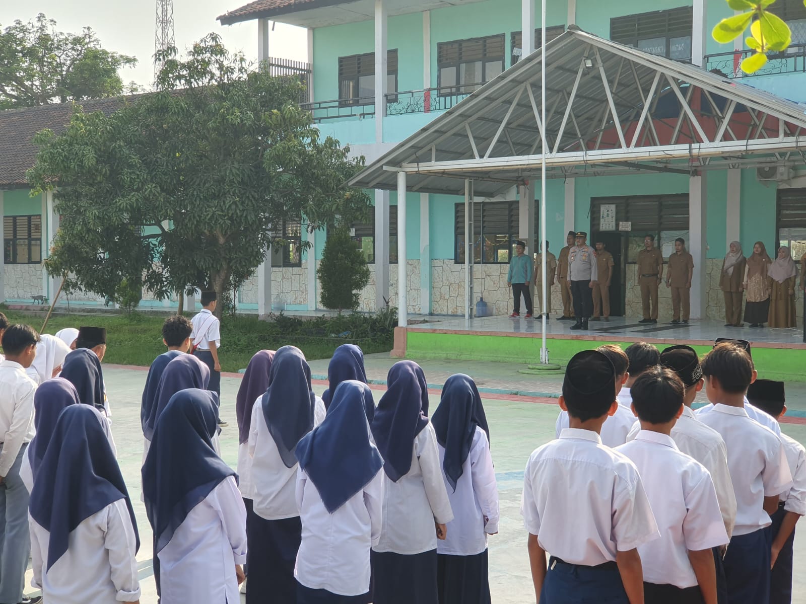 Kegiatan Upacara yang dimulai pukul 07.00 Wib berjalan dengan lancar dan hikmat, dalam kegiatannya turut hadir Bhabinkamtibmas Polsek Kresek Brigadir Rifki Eka, para dewan guru, serta seluruh siswa dan siswi Sekolah Mutiara Bangsa Kecamatan Gunung Kaler Kabupaten Tangerang.