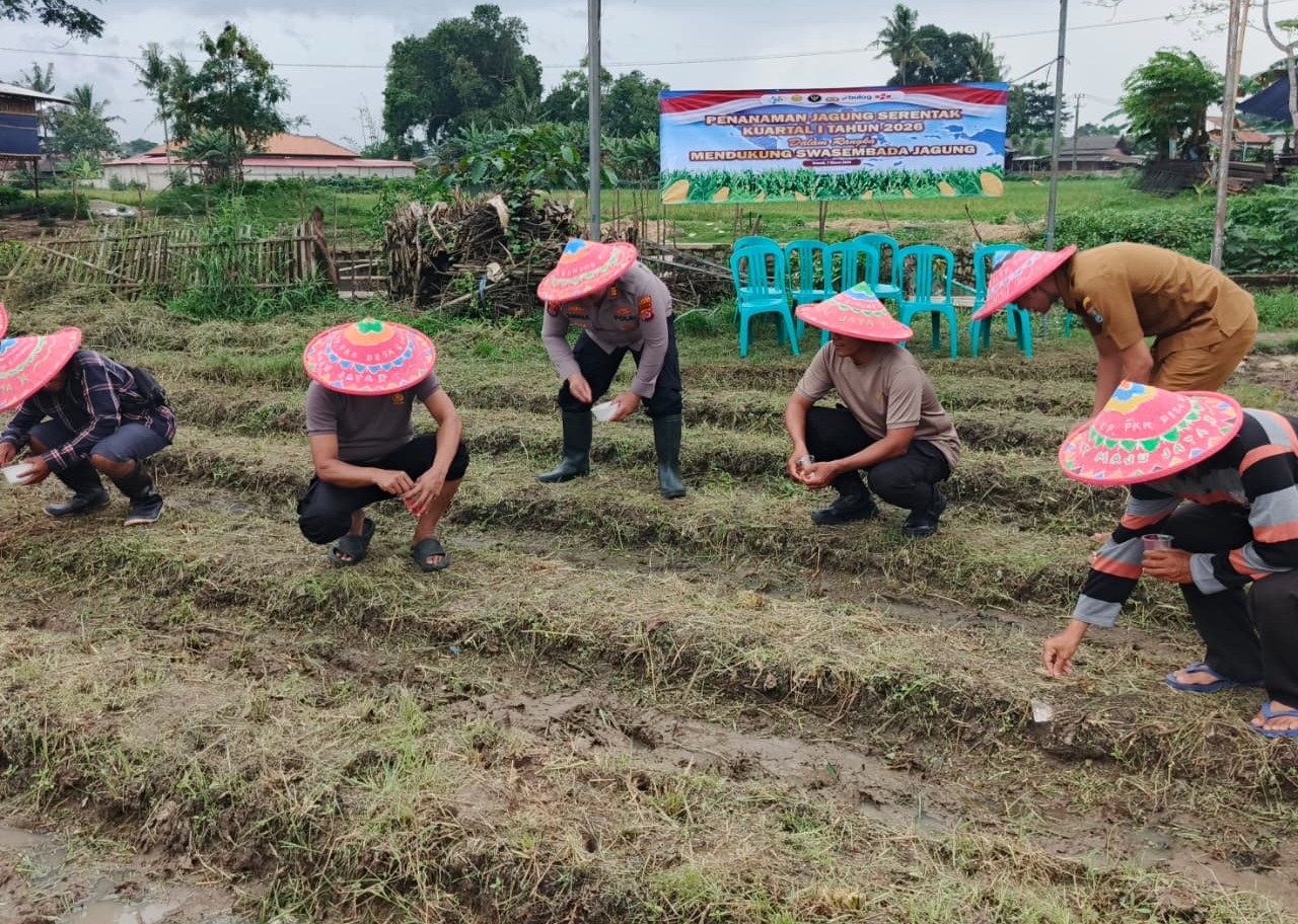 Tangerang, Penatipikor.com – Dalam rangka mendukung Program Ketahanan Pangan Nasional, Kapolsek Kresek Polresta Tangerang AKP Sitta Mardongan Sagala, SH dan jajarannya beserta Forkopimcam Kresek dan Aparatur Desa Talok melaksanakan kegiatan penanaman jagung hibrida Program 1 Desa 2 Hektare Kuartal I Tahun 2026 di Desa Talok Kecamatan Kresek Kabupaten Tangerang, Sabtu (07/03/2026)