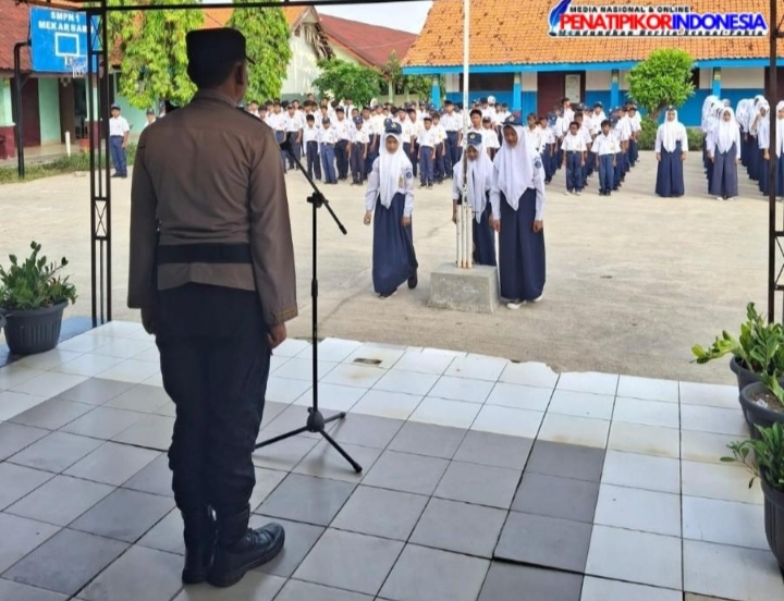 TANGERANG | Penatipikor.com – Kapolsek Kronjo, AKP I Nyoman Nariana, S.M., S.Pd, bertindak sebagai pembina upacara bendera di SMPN 1 Mekar Baru, Kecamatan Mekar Baru, Kabupaten Tangerang, Senin (15/9/2025).