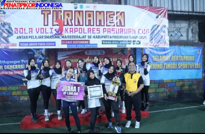 PASURUAN | Penatipikor.com – Kejuaraan bola voli Kapolres Pasuruan Cup 2025 antar pelajar resmi berakhir di GOR Permata Zhea, Desa Cangkringmalang, Kecamatan Beji, Kabupaten Pasuruan, pada Kamis (23/10/2025).