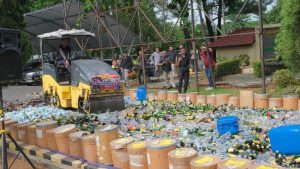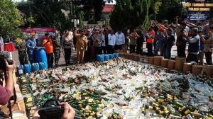 Dalam pemusnahan ini, sedikitnya ada 10.168 botol miras, ratusan liter ciu, 500 knalpot brong dan 46.000 butir petasan, serta 1,25 kuintal zat kimia berbahaya, serta ribuan butir obat-obatan terlarang type G.