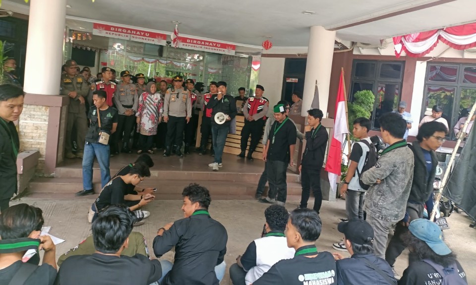 Tangerang | Penatipikor.com – Kepolisian dari Polresta Tangerang bersama jajaran Polsek melakukan pengamanan terhadap aksi unjuk rasa yang digelar oleh Himpunan Mahasiswa Islam (HMI) di Kantor Inspektorat Kabupaten Tangerang, pada Kamis (21/8) pukul 13.30 WIB.