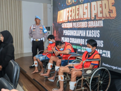 Dalam penangkapan, Ketiga bandit jalanan itu sempat diberi tindakan tegas terukur dengan ditembak kakinya oleh anggota Satreskrim Polrestabes Surabaya.