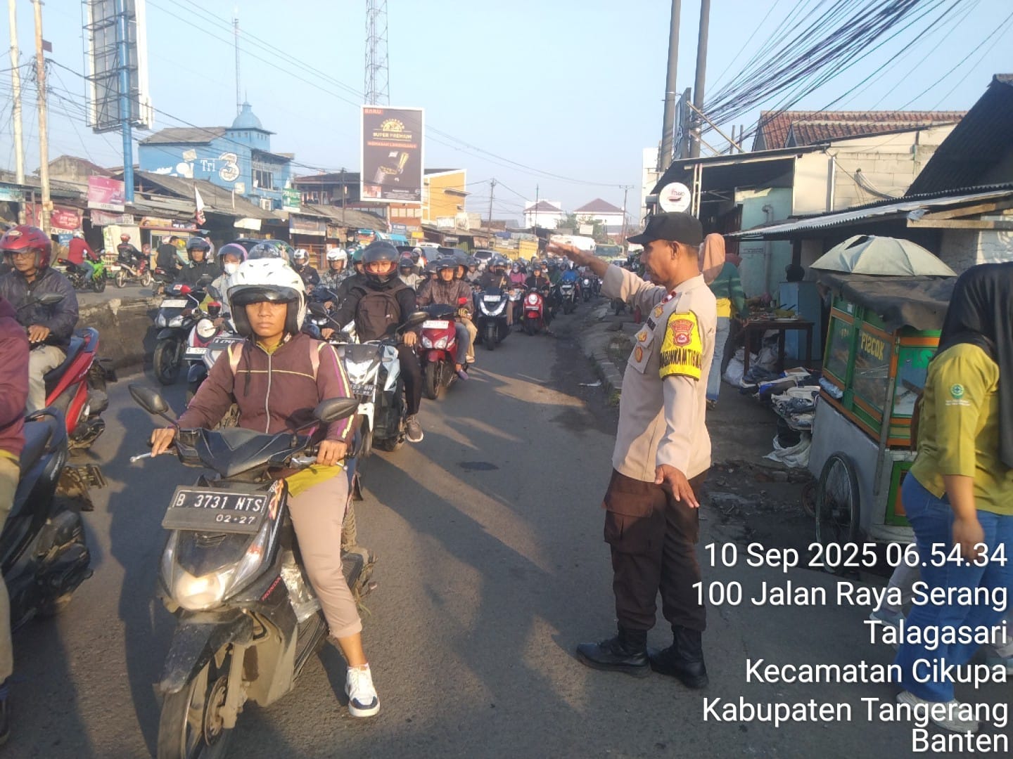 TANGERANG | Penatipikor.com – Polsek Cikupa Polresta Tangerang kembali melaksanakan kegiatan Pengaturan dan Pengamanan Lalu Lintas Pagi Hari (PECAK) di Jalan Raya Serang, tepatnya di pertigaan Columbus PT. Cingluh, Rabu (10/9/2025) pukul 06.30 – 08.00 WIB.