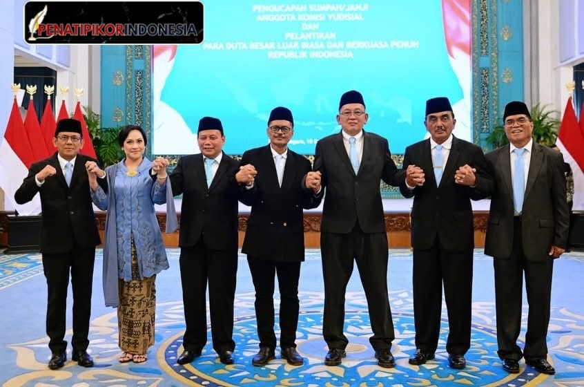 JAKARTA, Penatipikor.com – Presiden Prabowo Subianto menyaksikan secara langsung pengucapan sumpah/janji sejumlah Anggota Komisi Yudisial (KY) untuk masa jabatan tahun 2025–2030 yang digelar di Istana Negara, Jakarta, Jumat (19/12/2025).