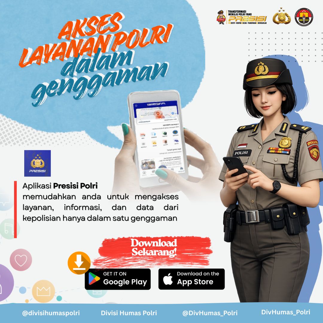 Polri mengajak seluruh masyarakat untuk memanfaatkan kemudahan layanan ini dengan mengunduh Aplikasi PRESISI Polri-SuperApp melalui App Store dan Play Store. Dengan satu genggaman, masyarakat dapat mengakses layanan kepolisian kapan saja dan di mana saja.