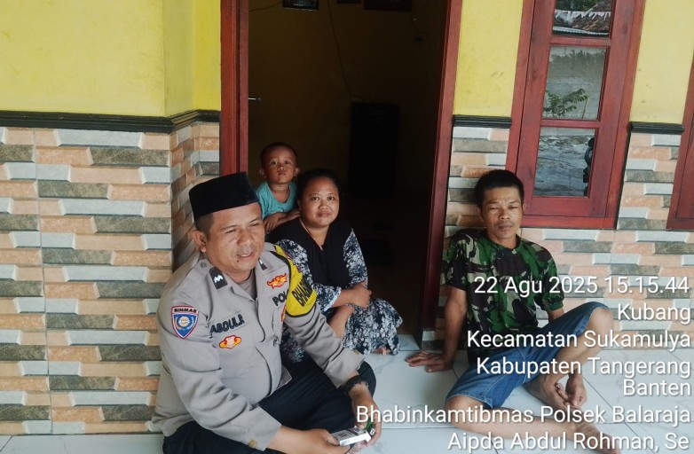 TANGERANG | Penatipikor.com – Bhabinkamtibmas Polsek Balaraja Aipda Abdul Rohman SE Melaksanakan Sambang DDS dan Silaturahmi kepada Tokoh Masyarakat Sdr Ade Sopian selaku Tokoh Masyarakat di Kp Kubang Asem RT 03/01 Desa Kubang Kecamatan Sukamulya Kab. Tangerang. Jum’at (22/08/2025).