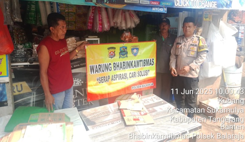 TANGERANG | Penatipikorindonesia.com – Personil Polsek Balaraja Ipda Setiyono selaku Kanit Binmas dan Bhabinkamtibmas Aipda Abdul Rohman SE melaksanakan giat Sambang warung Bhabinkamtibmas milik Sdr Sanusi di Kp Bojong Manuk RT 01/04 Desa Kubang Kecamatan Sukamulya Kabupaten Tangerang. Rabu (11/06/2025).