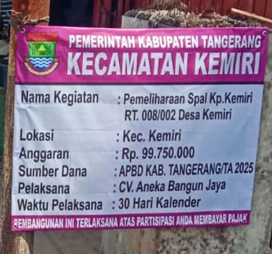 TANGERANG | Penatipikor.com – Proyek pembangunan Sistem Pengelolaan Air Limbah (SPAL) atau saluran U-ditch di Desa Kemiri, Kecamatan Kemiri, Kabupaten Tangerang, belakangan menjadi sorotan publik menyusul adanya pemberitaan yang menuding pelaksanaan di lapangan tidak sesuai dengan spesifikasi teknis. Namun, tudingan miring tersebut dipastikan tidak berdasar dan dinilai menyesatkan oleh pihak pelaksana proyek.
