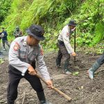 POLRES BANGLI GELAR GOTONG ROYONG PEMBERSIHAN MATERIAL TANAH LONGSOR DI KINTAMANI Penatipikor.com|BANGLI