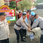 SERANG | Penatipikor.com – Kapolres Serang AKBP Condro Sasongko memberikan kenang-kenangan satu ekor domba Garut kepada AKP (Pur) Supriyatna dan Ipda (Pur) Miftakhul Hadi